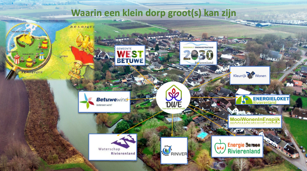 - Voortrekkersrol spelen in de energietransitie van de gemeente West Betuwe, i.h.b. Enspijk;