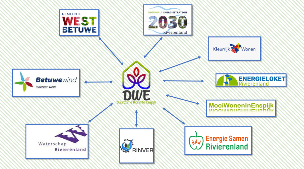 We hebben een netwerk met samenwerkende organisaties ontwikkeld, die allemaal betrokken zijn bij de realisatie van ons warmtenet in Enspijk.