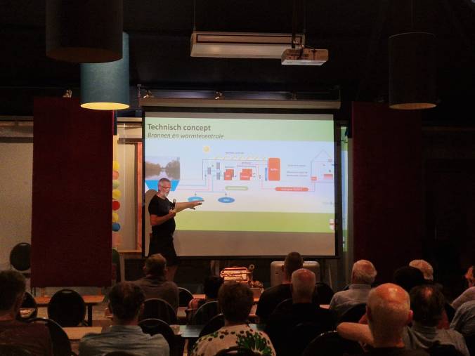 Peter Janson, installatietechnicus en verantwoordelijk voor de technische ontwikkeling van het warmtenet, gaf een uitgebreide uitleg over de werking van de installatie en hoe de aansluiting in de huizen gerealiseerd kan worden. Veel inwoners stelden vragen, die hij helder en to the point beantwoordde.